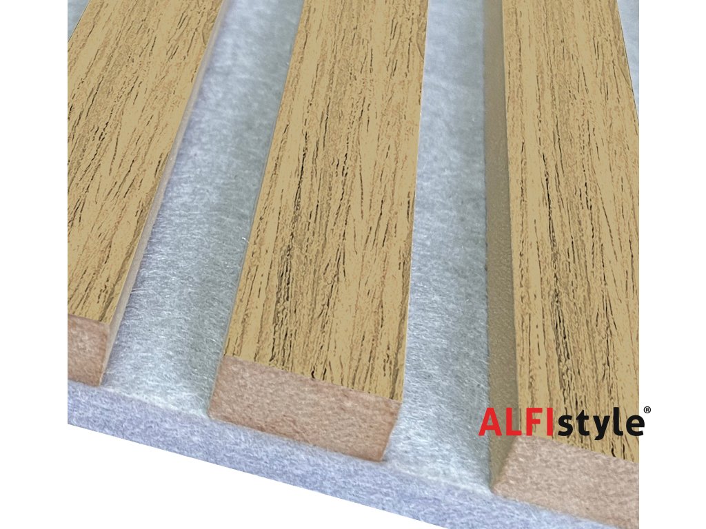 Akustický panel s dřevěnou dýhou - dekor dub hnědý | Šedý podklad | 260 x 60,5 cm | ALFIstyle.cz