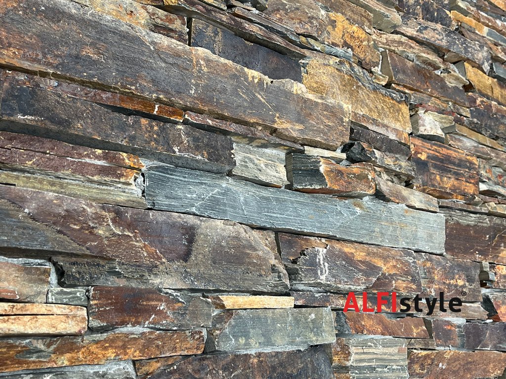 Die Schiefer-Verkleidung BL022 dient zur Gestaltung von Haus- und Gartenfassaden sowie von Innenräumen in Einfamilienhäusern und Wohnungen. Die Verkleidung verschönert und verleiht Ihrem Zuhause oder Arbeitsplatz sowohl außen als auch innen eine besondere Note. Wir verwenden Granit für Fassaden, Bartheken, Zäune, Terrassen, Gartenelemente, Wände in Wohnzimmern und sehr oft auch in Badezimmern. In unserem Online-Shop können Sie ausschließlichNatursteinverkleidungen kaufen, nicht deren künstliche Imitationen. Der Preis für Steinverkleidung BL0212 wird pro m² inklusive MwSt. berechnet.