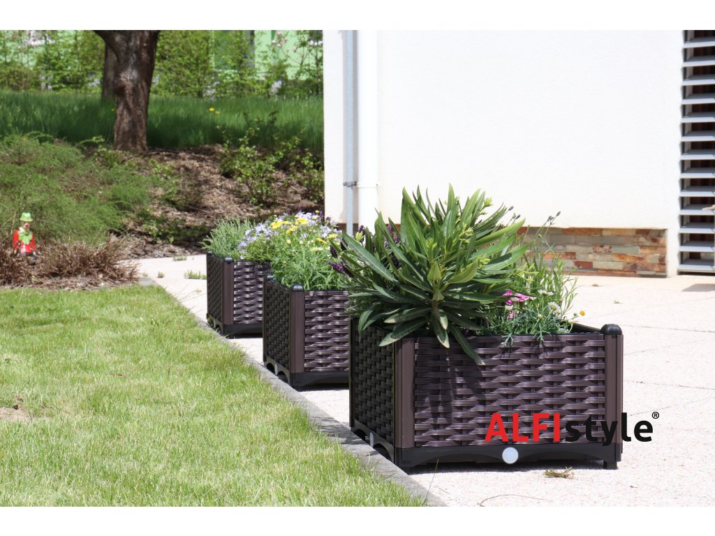 Der Kasten ist UV-beständig und witterungsbeständig. Der Blumentopf besticht durch sein elegantes Flechtmuster und ist eine perfekte Nachbildung von natürlichem Rattan. Dank seines eleganten Aussehens, der automatischen Bewässerung und des einzigartigen Faltmechanismus werden Sie und Ihre Pflanzen diese Pflanzkästen im Garten, auf der Veranda oder dem Balkon lieben. Lieferumfang: Doppelboden, 4 Wände, 4 Eckstützen, 4 Seitenwandabdeckungen, 4 Abdeckungen für die Eckstützen, 4 Wasserstopfen Abmessungen: 40 x 40 x 26 cm, Innentiefe 19 cm Material: Polyethylen extra hoher Dichte (HDPE) – garantiert Beständigkeit gegen UV-Strahlung und Witterungseinflüsse. Geeignet für den Innen- und Außenbereich.