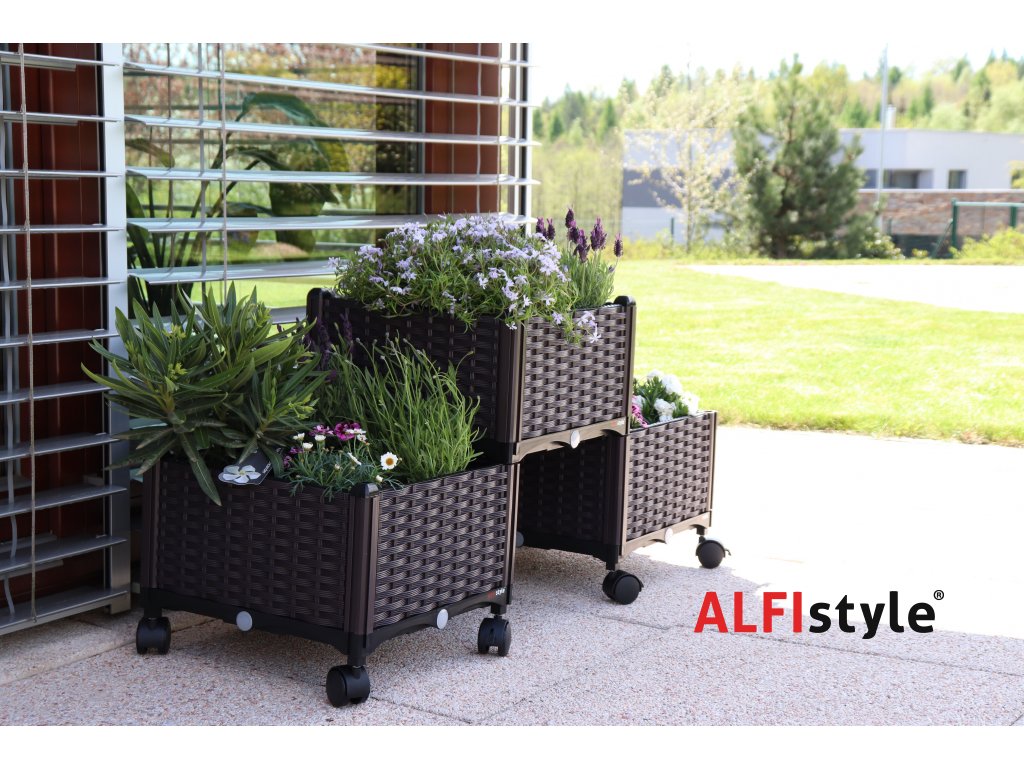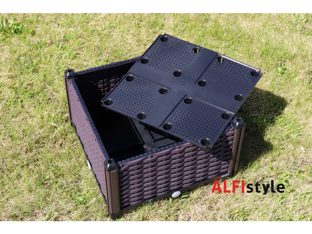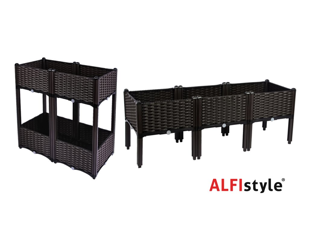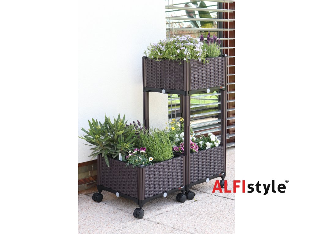 Der selbstbewässernde Blumenkasten verfügt über ein System verstellbarer Wände, an denen weitere Elemente vertikal und längs befestigt werden können. Dank dieses einzigartigen Systems lassen sich mühelos mehrstufige Blumenbeete, Pyramiden oder Hängegärten gestalten. Das Faltsystem eignet sich beispielsweise, wenn Sie ein durchgehendes Blumenbeet mit einer größeren Anzahl von Pflanzen anlegen möchten, das Sie jederzeit erweitern oder verkleinern können. Balkonbesitzer werden die Möglichkeit, die Kästen übereinander zu stapeln, besonders schätzen. Nach der Saison lässt sich der Kasten einfach zusammenfalten und platzsparend verstauen.